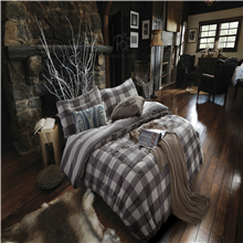 中国木兰锦床上用品.灰色中白格子.水洗棉纤丝鹅绒被和棉花被